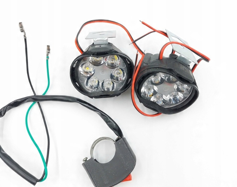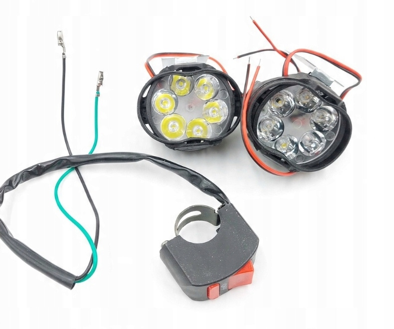- Oświetlenie 6 LED: dodatkowe reflektory LED motocyklowe, każda lampa posiada wewnątrz 6 diod LED, które zapewniają wysoką jasność, co gwarantuje duże bezpieczeństwo podczas jazdy w ciemności.
