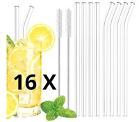Słomki szklane do picia wielorazowe EKO 16szt czyścik 4 szt 2 rodzaje+etui