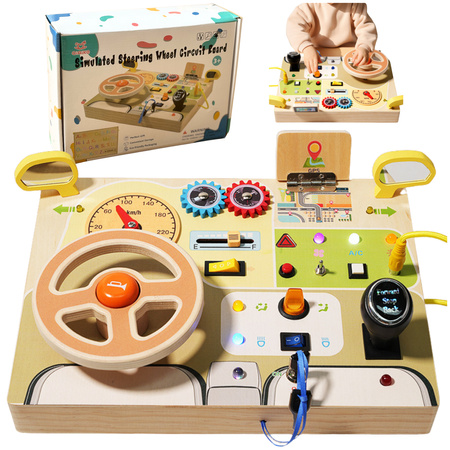 Tablica Manipulacyjna Drewniana Sensoryczna Montessori Edukacyjna Światełka
