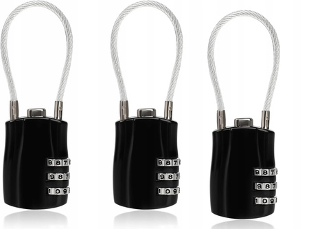 - 3-cyfrowa kłódka kodowana z długim pałąkiem, 3-pak