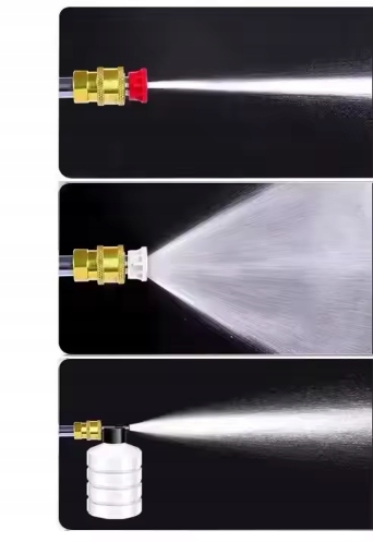 - Różnorodne końcówki: Myjka ciśnieniowa jest często wyposażona w różne dysze i końcówki, które pozwalają dostosować ciśnienie wody do rodzaju czyszczonej powierzchni, co zwiększa efektywność czyszczenia i chroni delikatne powierzchnie, takie jak lakier samochodowy.