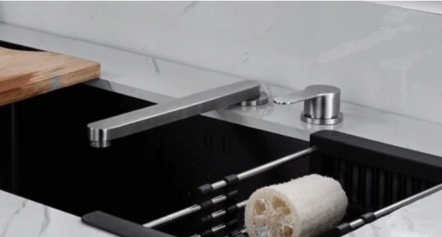 Bateria kuchenna ze stali nierdzewnej szczotkowanej stojąca chowana