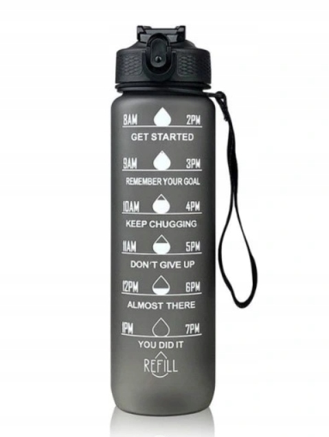 Bidon butelka na wodę z miarką motywacyjną 900ML czarny