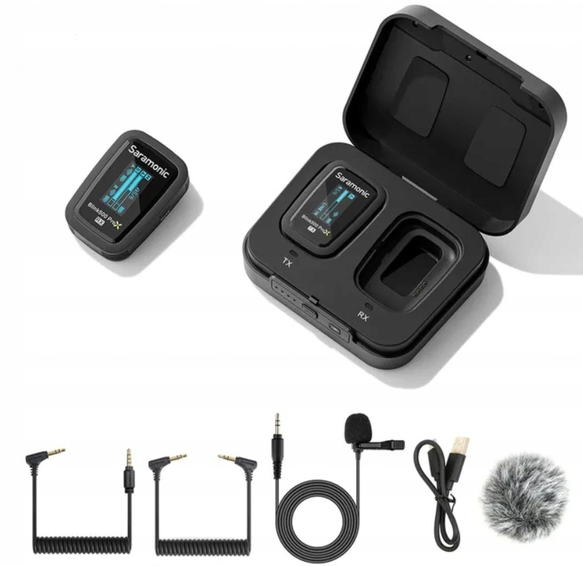 Zestaw do bezprzewodowej transmisji dźwięku Saramonic Blink500 ProX B1 (RX + TX) to świetny wybór dla vlogerów, dziennikarzy, youtuberów, tiktokerów i twórców internetowych. W pudełku znajdziesz nadajnik( niestety nie działa), odbiornik, unikalne etui ładujące, mikrofon krawatowy i dodatkowe akcesoria. To wszystko, czego potrzebujesz, aby zapewnić sobie profesjonalną jakość nagrań. Odbiornik połączysz z aparatami, kamerami, rejestratorami dźwięku lub smartfonami wyposażonymi w gniazdo mini jack 3,5 mm. Niewielkie mikroporty z dużymi ekranami LCD zapewnią zasięg transmisji wynoszący 100 m. Zestaw wyróżnia się ultraniskim poziomem latencji oraz świetnym stosunkiem sygnału do szumu. Mikroporty z łatwością naładujesz za pomocą etui ochronnego.