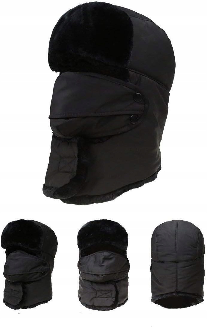 DAMSKA MĘSKA TERMICZNA CZAPKA LOTNIKA NARCIARSKA ZIMOWA CIEPŁA MASKA czarny