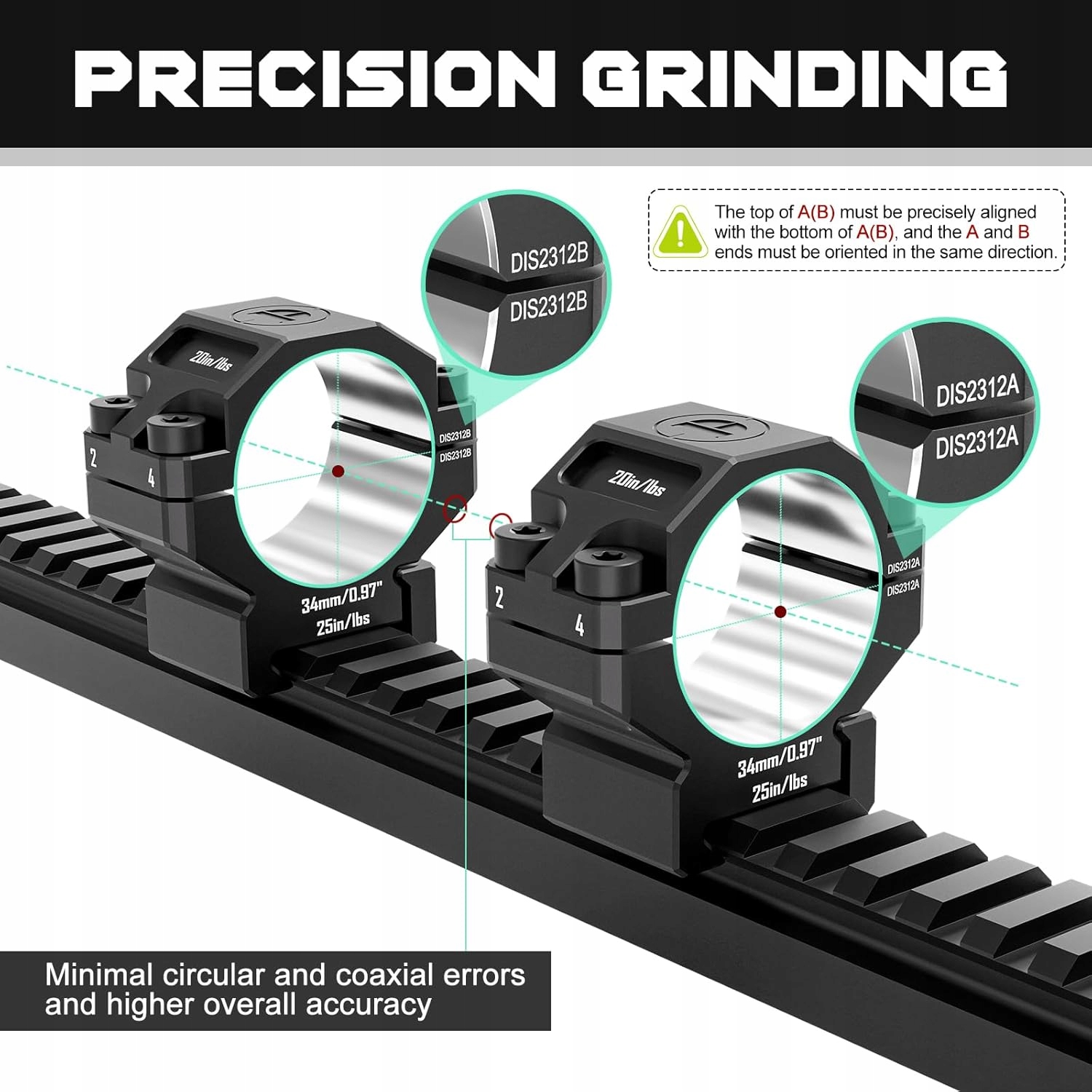 ➡️ Montaż bez luzów, idealne dopasowanie do lunet 34 mm