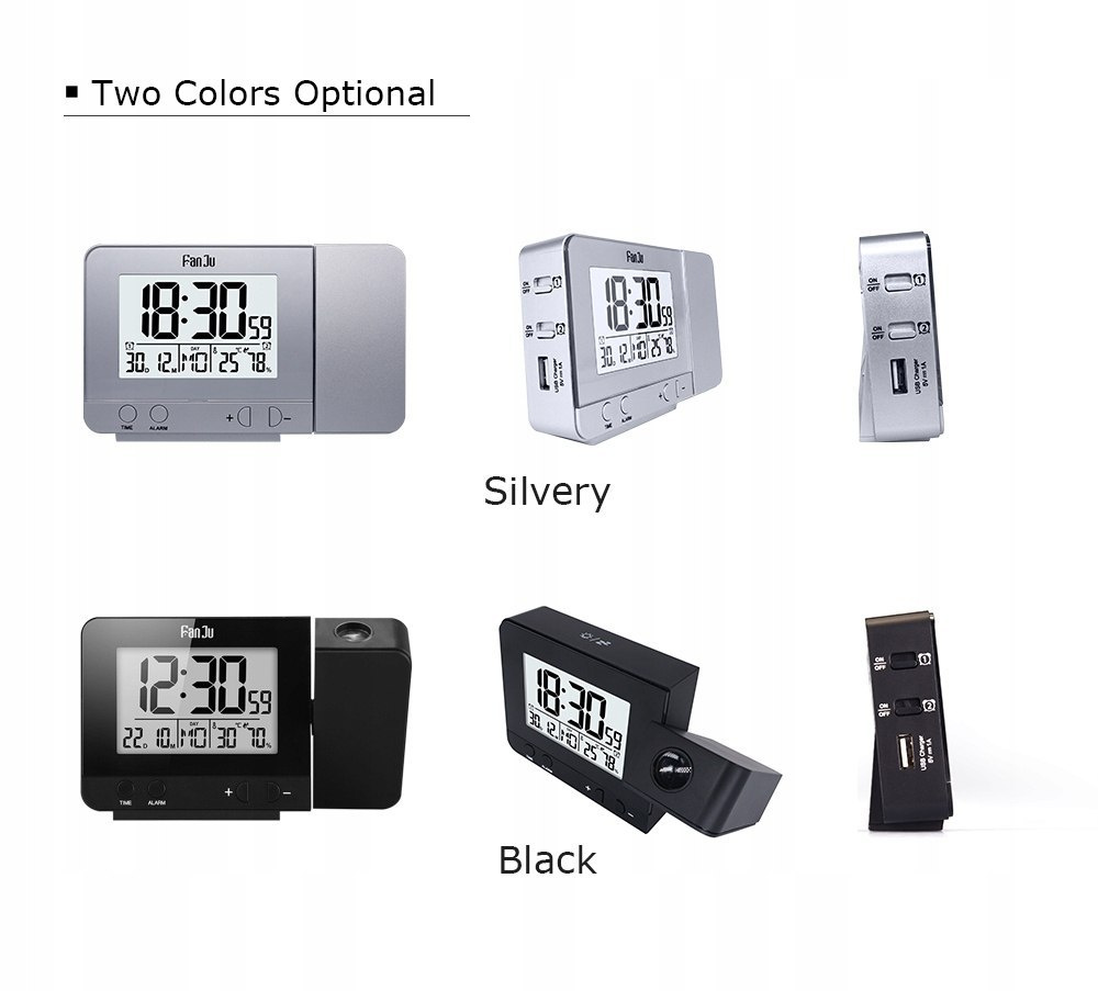 G436 ZEGAR/BUDZIK FANJU FJ3531 Z PROJEKTOREM