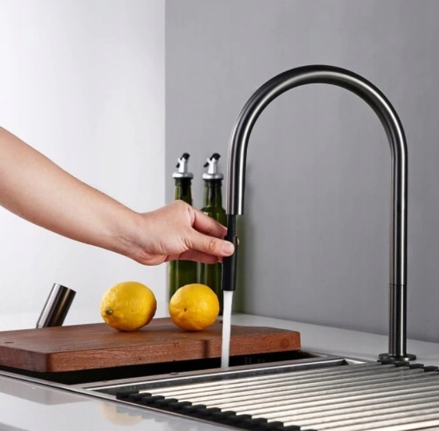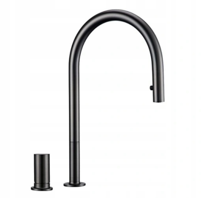 Wysoka, łukowata wylewka obraca się o 360 stopni i zapewnia doskonały prześwit do każdego zadania. Wyciąganą głowicę natryskową można z łatwością obsługiwać w celu wykonywania zadań z bliska lub napełniania garnków poza zlewem.
