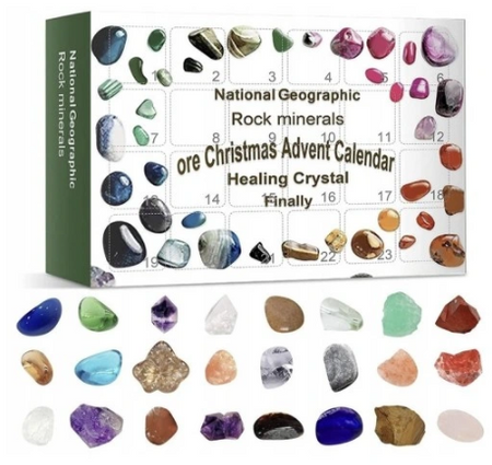 KALENDARZ ADWENTOWY MINERAŁOWY MINERAŁY KAMIENIE KRYSZTAŁY ŚWIĘTA LECZNICZE