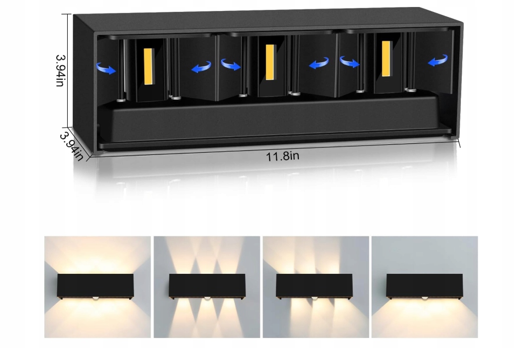 - Regulowany kąt świecenia - lampa ścienna LED do użytku na zewnątrz ma prosty i piękny design z wbudowanymi przegrodami na górze i na dole. Można ustawić różne kąty światła w tej samej scenie, ustawiając ściankę akustyczną. Funkcja regulowanego kąta świecenia lampy ściennej LED może zapewnić Tobie i Twojej rodzinie przyjemniejsze wrażenia