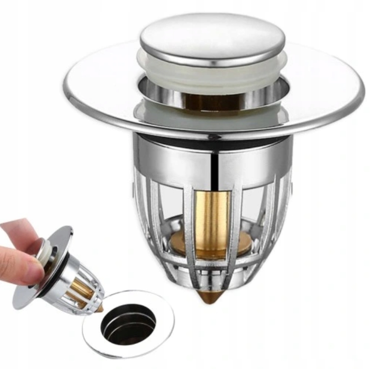 Wysuwany korek spustowy do zlewu z filtrem koszowym, który zapobiega zatykaniu, zbieraniu brudu i włosów.