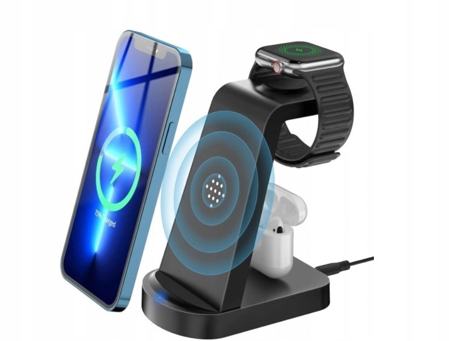 - ?Kompatybilny z Apple Watch Series 8/7/6/SE/5/4/3/2 (nie dotyczy zegarków innych marek) i Air Pods 3/2/Pro (wymaga ładowania za pomocą etui do ładowania bezprzewodowego).
