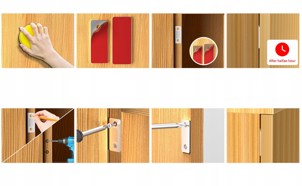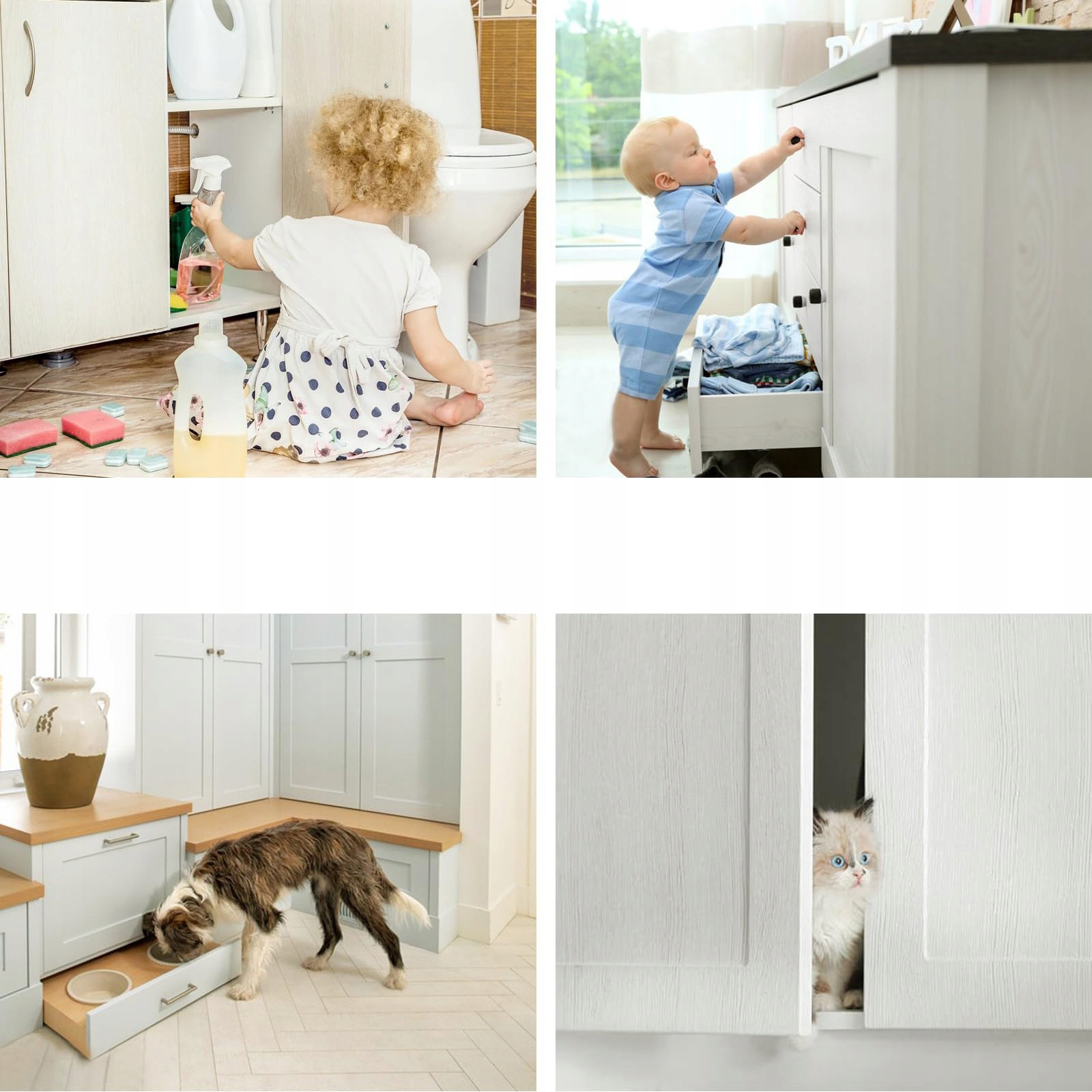 Mocny klej: dwustronna taśma klejąca jest wystarczająco mocna, aby zamknąć szafkę bez wiercenia otworów na śruby w celu jej wkręcenia. Oszczędność czasu, a także ochrona drogiej szafki przed uszkodzeniem. Dostarcz także śruby do swojej instalacji. Proszę zamknąć i otworzyć drzwi po 12 GODZINACH, aby masa klejąca dobrze przylegała do tej powierzchni.
