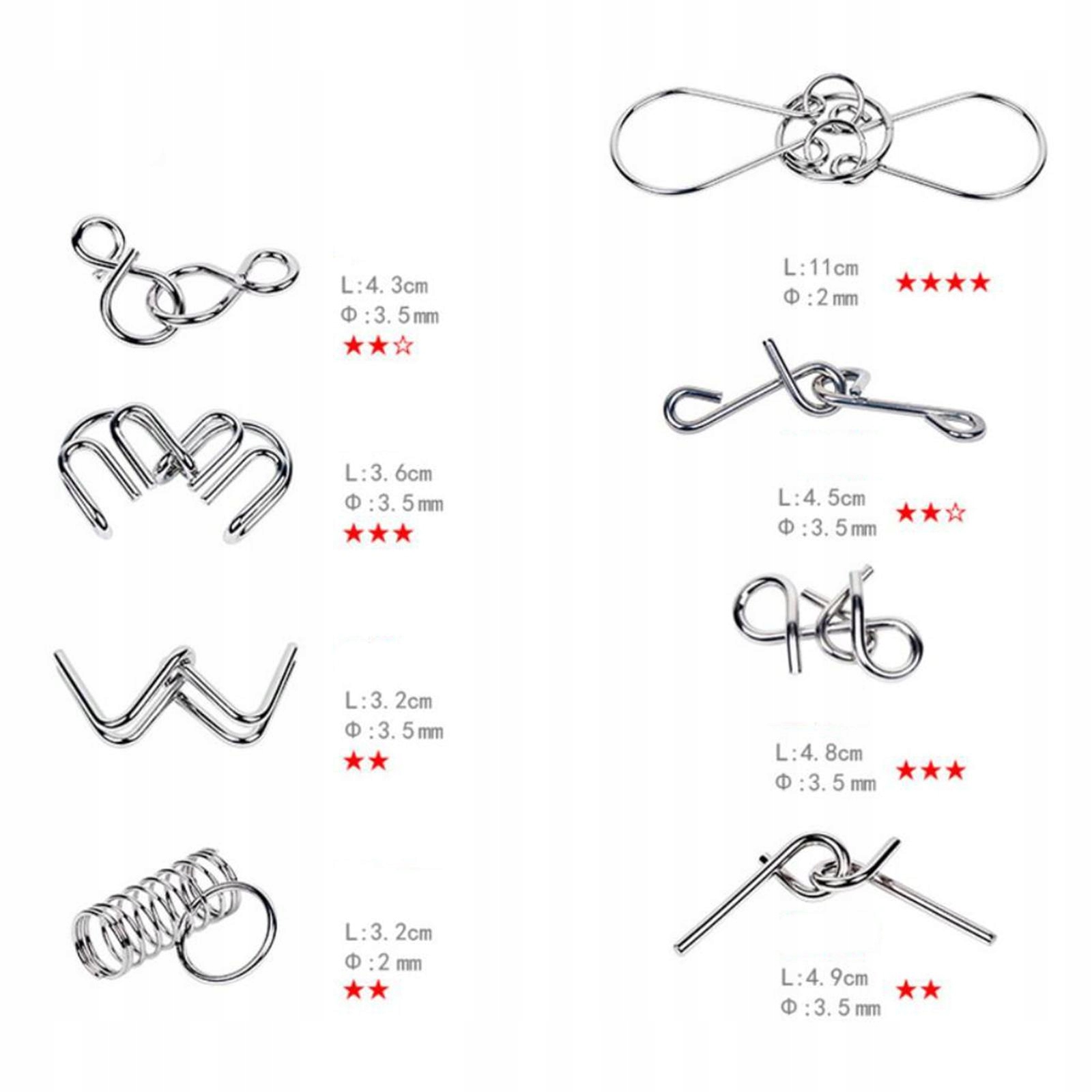 METALOWE PUZZLE z drutu łamigłówka zabawka sztuczka test IQ dla dorosłych