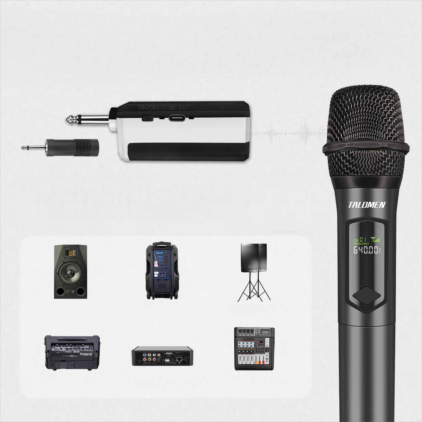 Talomen Bezprzewodowy Mikrofon, Profesjonalny Podwójny Przenośny Bezprzewodowy System Dynamiczny z Odbiornikiem Ładowalnym (160 stóp), Zestaw Mikrofonowy do Śpiewania, Karaoke, Wesela, DJ, Imprezy,