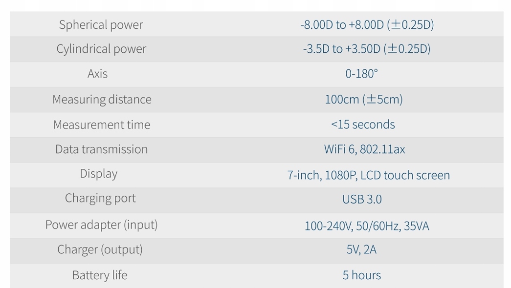 - Szeroki zakres pomiarów: Może mierzyć zarówno wzrok w różnych zakresach sferycznych, jak i astygmatyzm.