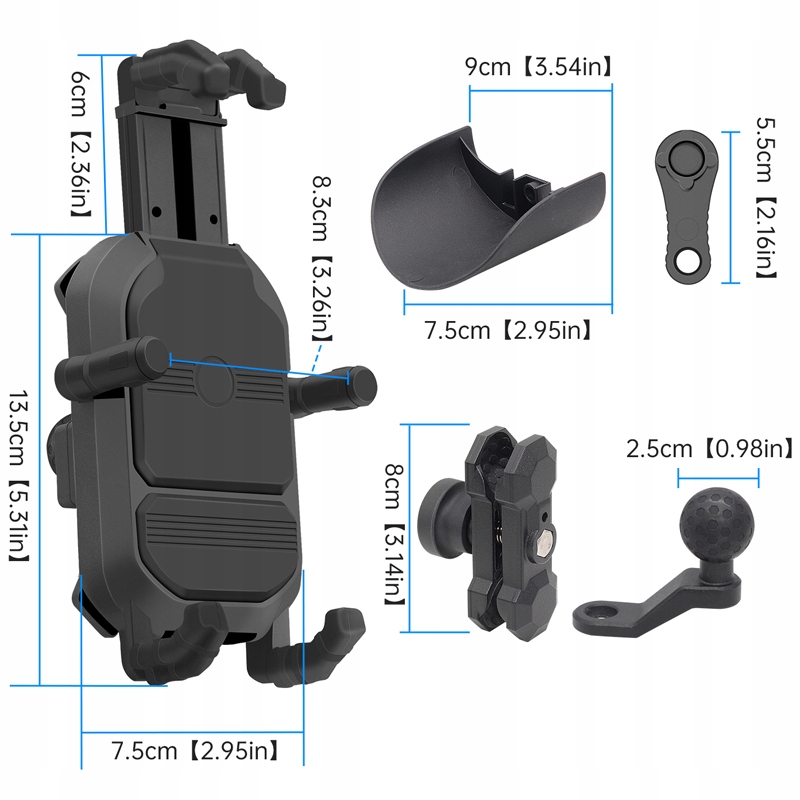 - Zakres rozszerzenia uchwytu: szerokość: 9,5-11cm; wysokość: 13,5-17,5cm