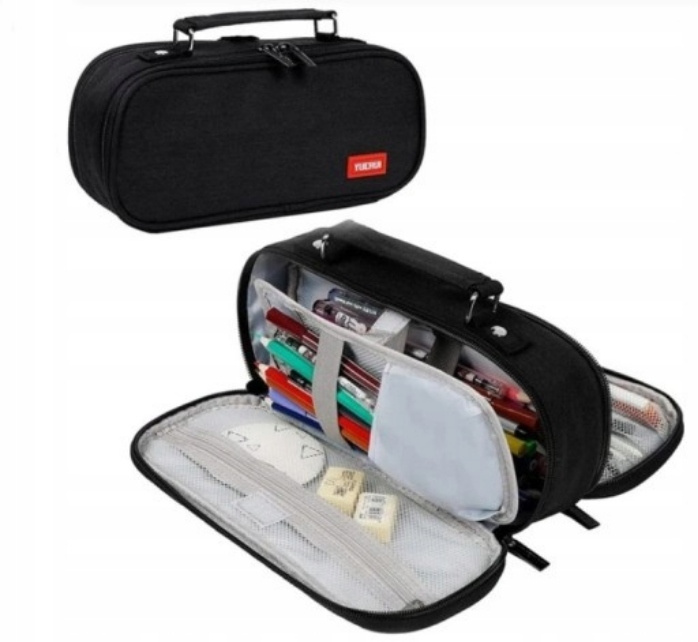 - Dwa zamki błyskawiczne zwiększające wygodę wyszukiwania potrzebnych przyborów
