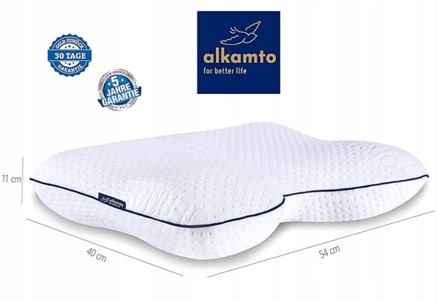 - ✔ Zapobiega poceniu się – niemiecka pianka memory CosyPUR firmy BASF jest wyposażona w kanały wentylacyjne, dzięki czemu świeże powietrze może przepływać przez poduszkę i odprowadzać pot z powierzchni. Poduszka podpierająca kark z pianki Visco jest hipoalergiczna i hamuje zapachy oraz rozwój bakterii i roztoczy. Ergonomiczna poduszka pod głowę alkamto jest bezzapachowa i przyjazna dla skóry. Dzięki specjalnie zaprojektowanemu łukowi pod kark i ergonomicznej fali karku.