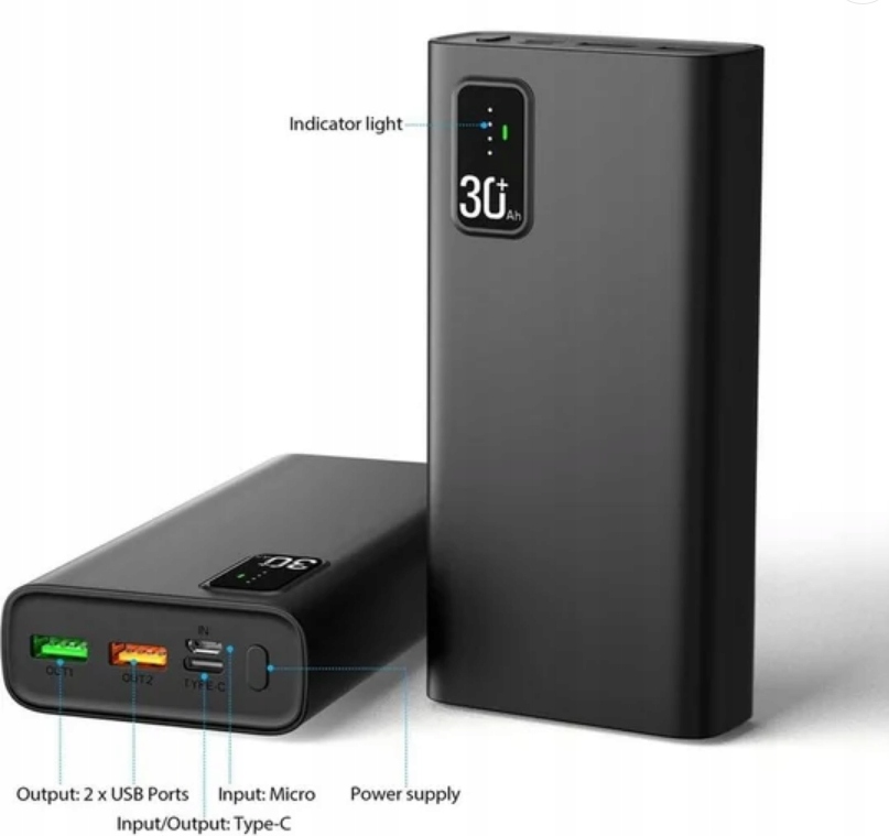 Powerbank wyposażony jest w dwa porty USB oraz port USB-C, dzięki czemu umożliwia jednoczesne ładowanie trzech urządzeń, co pozwala zaoszczędzić czas i dzielić się energią z rodziną lub przyjaciółmi. Z kolei porty wejściowe (Typ-C i micro USB) zapewniają wygodę podczas ładowania samego powerbanku. Urządzenie jest kompatybilne ze smartfonami, tabletami, głośnikami Bluetooth, słuchawkami, aparatami fotograficznymi, przenośnymi konsolami do gier i innymi urządzeniami USB.