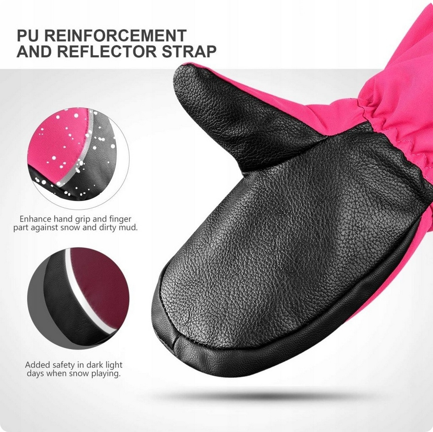 - Trwała wodoodporna tkanina nylonowa: jest wodoodporna i odporna na zużycie podczas uprawiania sportów zimowych na świeżym powietrzu. Wysoka trwałość koloru. Skutecznie zapobiegaj zwilżaniu stopionego śniegu i wsiąkaniu wody, łatwe do zabawy i utrzymuj ręce w cieple i suchości przez długi czas gry.