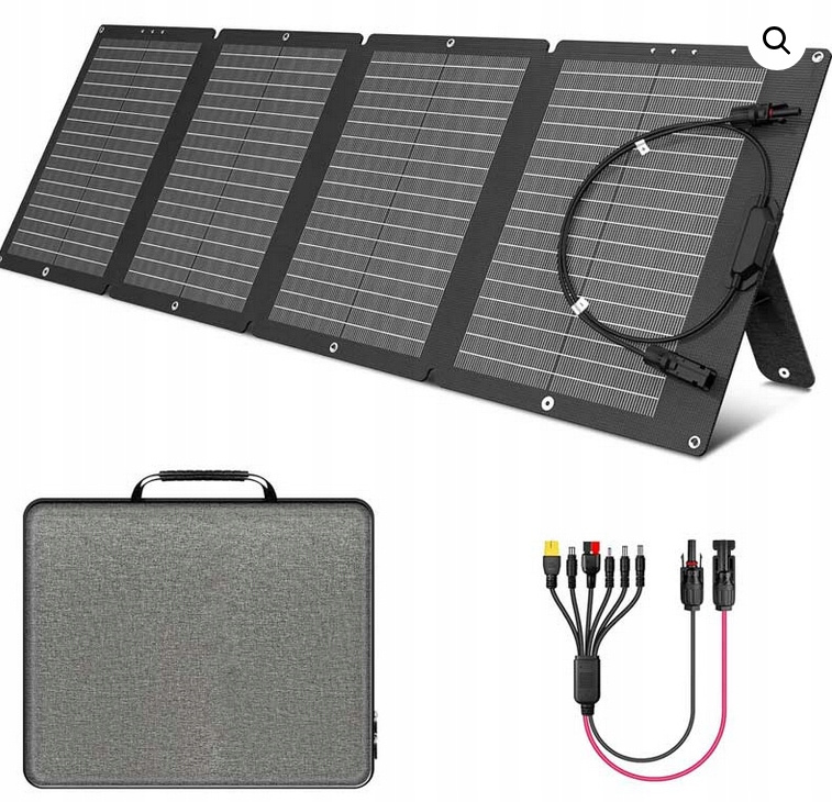 - Składany panel słoneczny 120 W: panel słoneczny ma 6 portów wyjściowych, DC7909, DC6530, DC5521, DC35135, Anderson, XT60. Obsługuje łączenie wielu typów urządzeń, stacji ładowania, lamp LED, kamer, dekoderów itp.