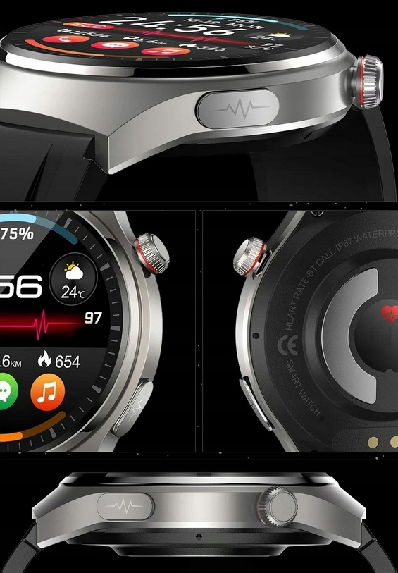 SMARTWATCH UNISEX Zegarek AMOLED, POMIAR TĘTNA, CUKRU CIŚNIENIEWY