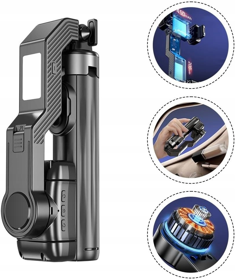 Stabilizator gimbal Q31 360° do smartfona z lampą LED i statywem