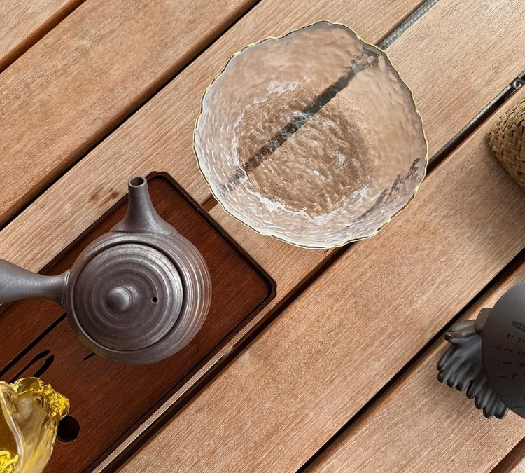 Szklana miseczka dekoracyjna z falowanym rantem – szkło młotkowane z delikatnym złotym brzegiem