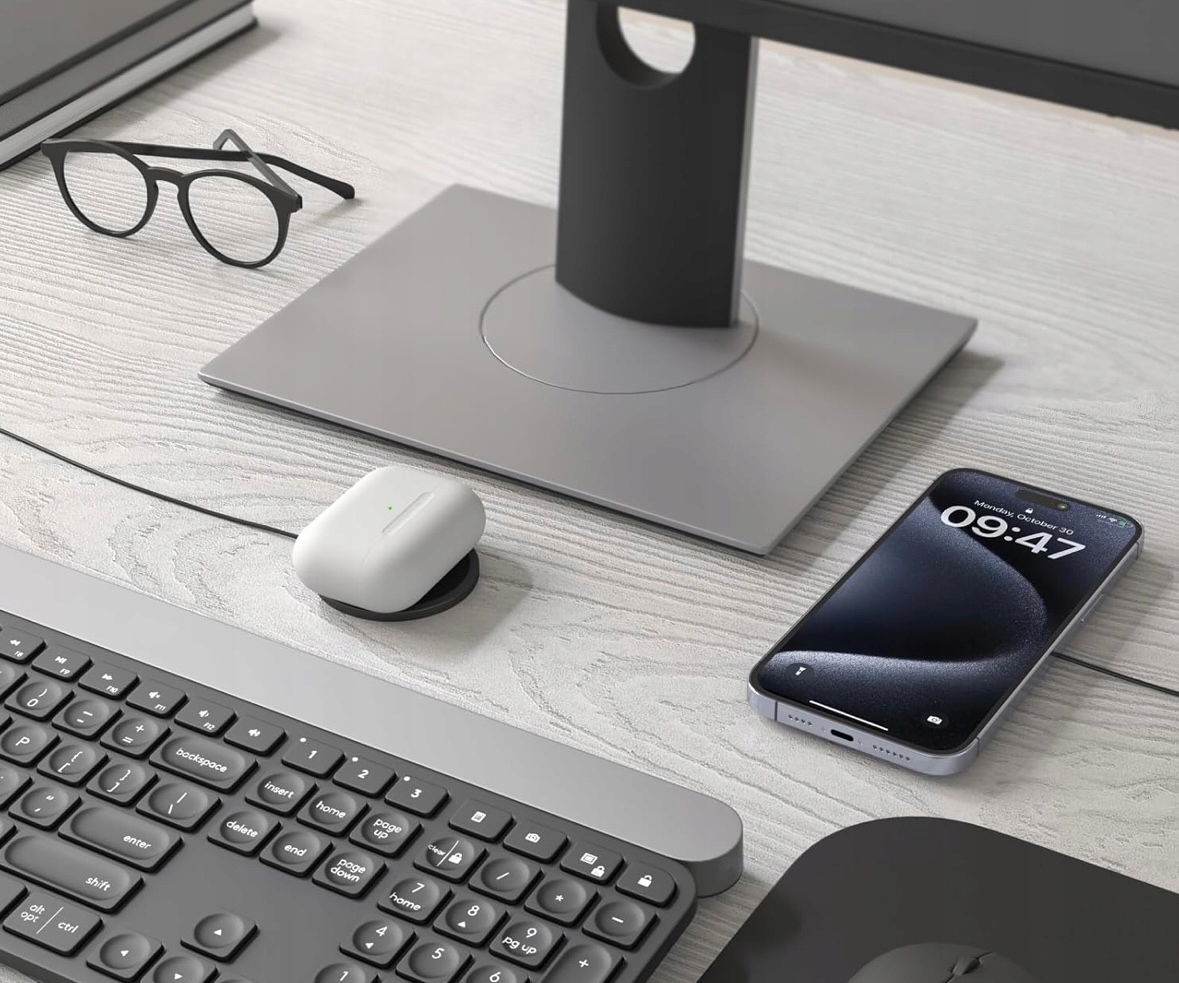 Nowoczesna ładowarka indukcyjna kompatybilna z MagSafe przeznaczona do urządzeń marki Apple, współpracuje również z urządzeniami innych marek obsługująca technologie ładowania bezprzewodowego.