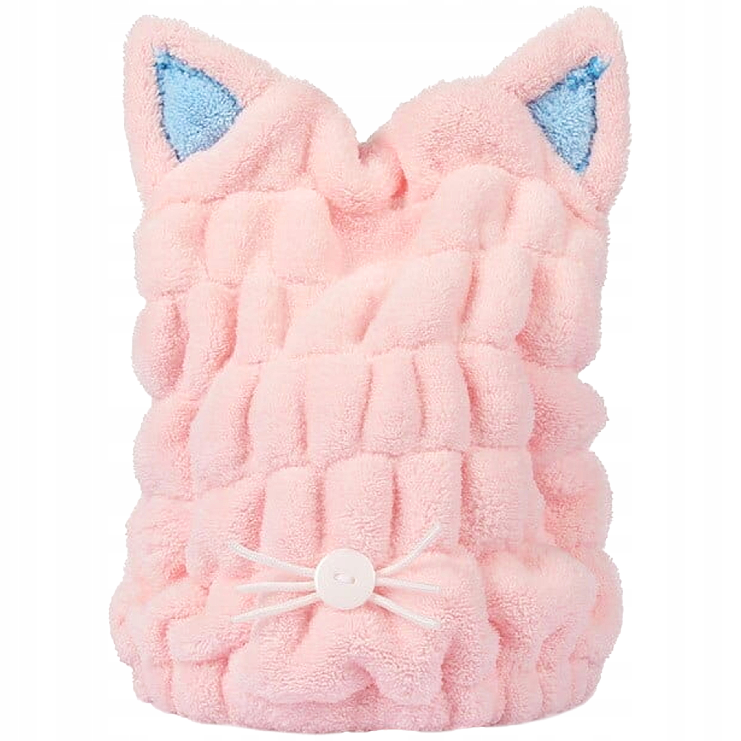 Turban ręcznik do suszenia włosów kotek zestaw 2szt różowy i niebieski