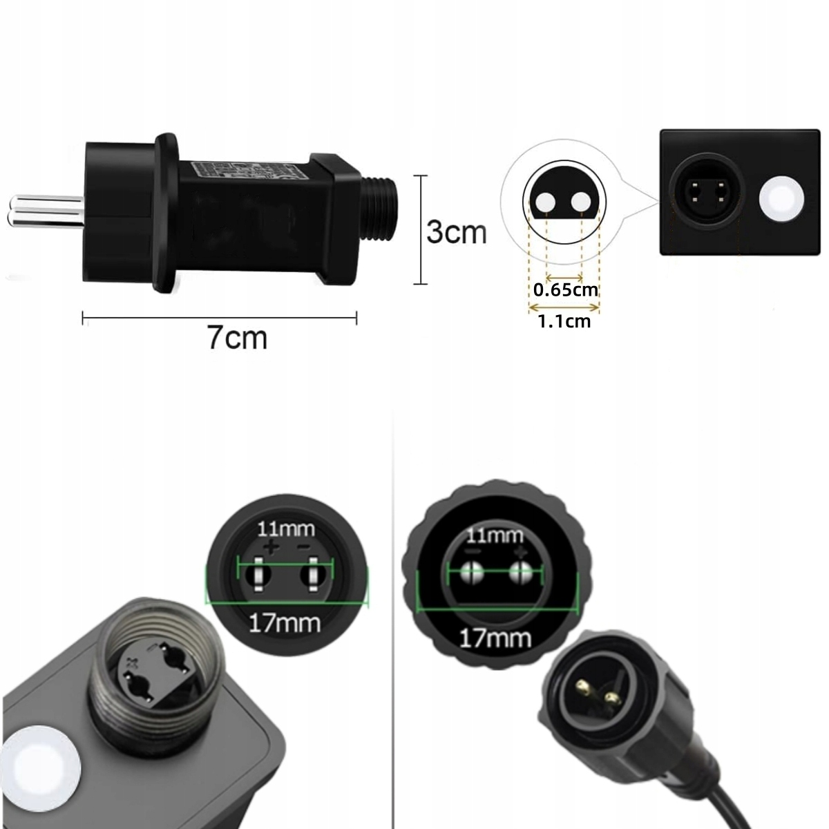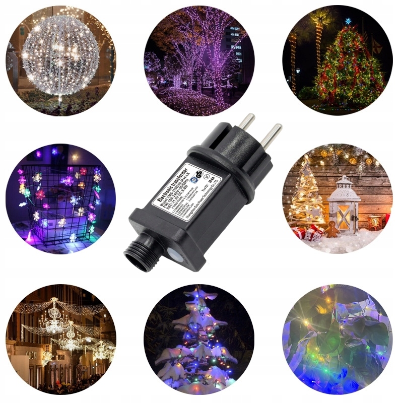 Zasilacz do 1000 lampek LED, odpowiedni do większości lampek choinkowych niskiego napięcia. Napięcie wejściowe: 220-240V 50/60Hz Napięcie wyjściowe: 24V Moc znamionowa: 6W