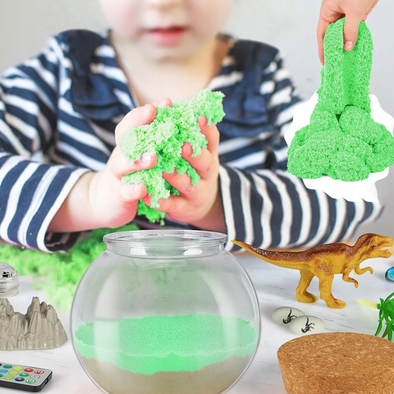 Zestaw Kreatywny Dinozaur Lampka Led RGB Piasek Kinetyczny DIY LAMPKA NOCNA DLA DZIECI